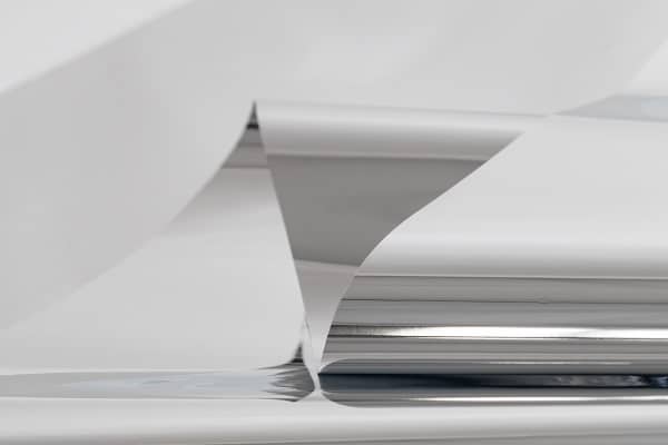 This PCR (Post Consumer Recycled) laminating film, metallized by REXOR, is made 70 % from recycled PET and only 30 % from virgin PET.